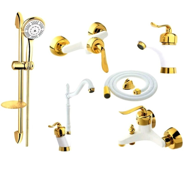 ست شیرالات رستاک رنگ سفید طلا مدل چکاوک